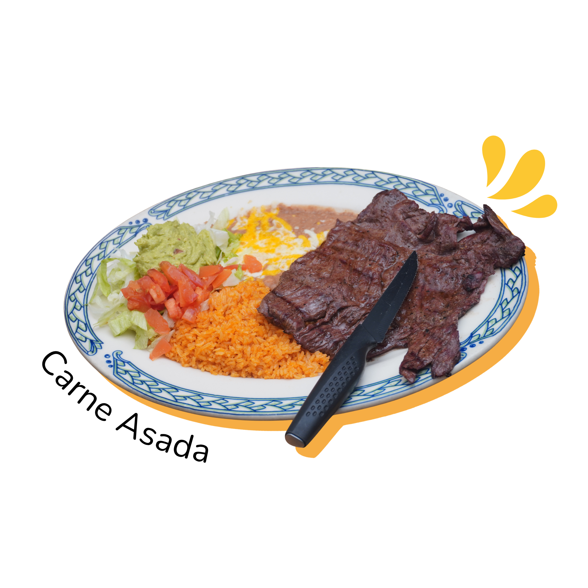Served with rice and refried beans add $1.50